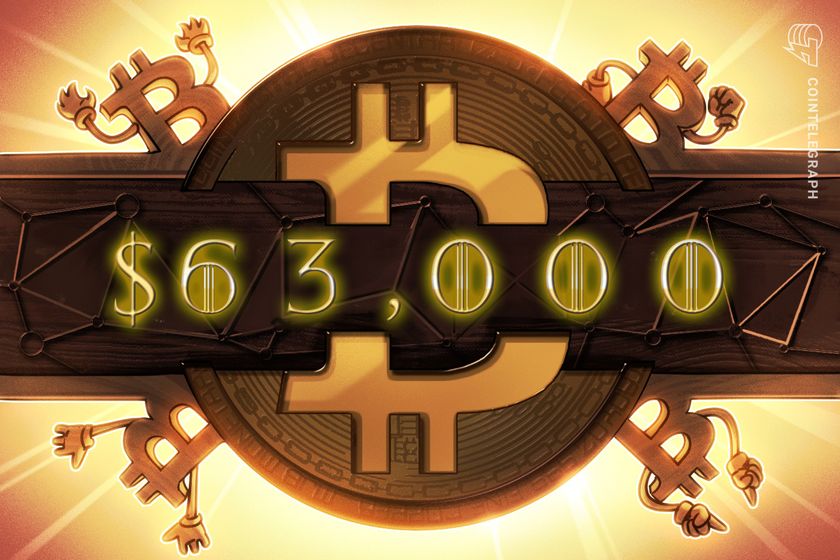 Bitcoin (BTC) battled $63,000 at the July 15 Wall Street open as traders looked for signs of further upside.Data from Cointelegraph Markets Pro and TradingView showed bulls holding firm as daily gains totaled 3.5%.Now up 10% since the start of the weekend, Bitcoin spawned fresh hopes of a full return of the bull market after weeks of sideways action punctuated by liquidation cascades downward. Read more Â