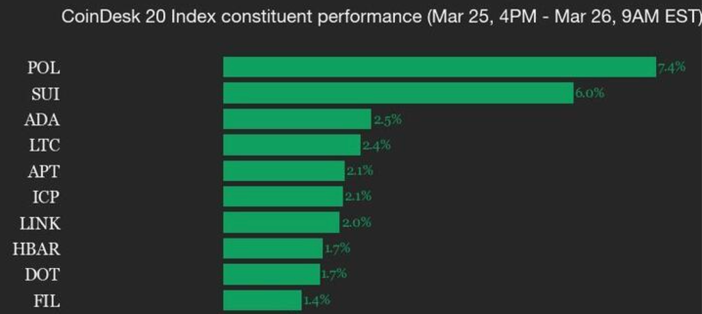CoinDesk Indices presents its daily market update, highlighting the performance of leaders and laggards in the CoinDesk 20 Index. The CoinDesk 20 is currently trading…